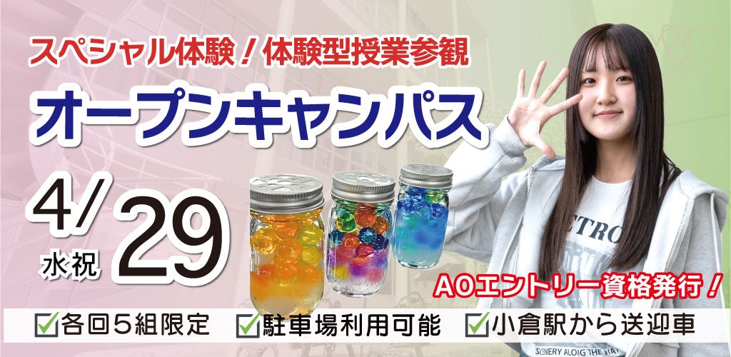 毎回様々な授業が体験できるオープンキャンパス。おひとりでも、友達や保護者の方と一緒でもOK!社会人などのお忙しい方に、短時間で終わるショートオーキャンも好評です!