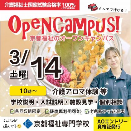 2026年 2月27日3/14は介護とアロマのオープンキャンパス
