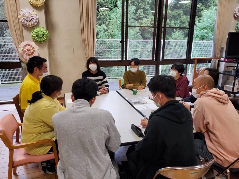 訓練では、地震や豪雨などの災害が起こった際、特別養護老人ホームの職員としてどのような対策を講じるべきかについて、天ヶ瀬苑の職員様と共に実践やグループワークを通じて深く学びました。