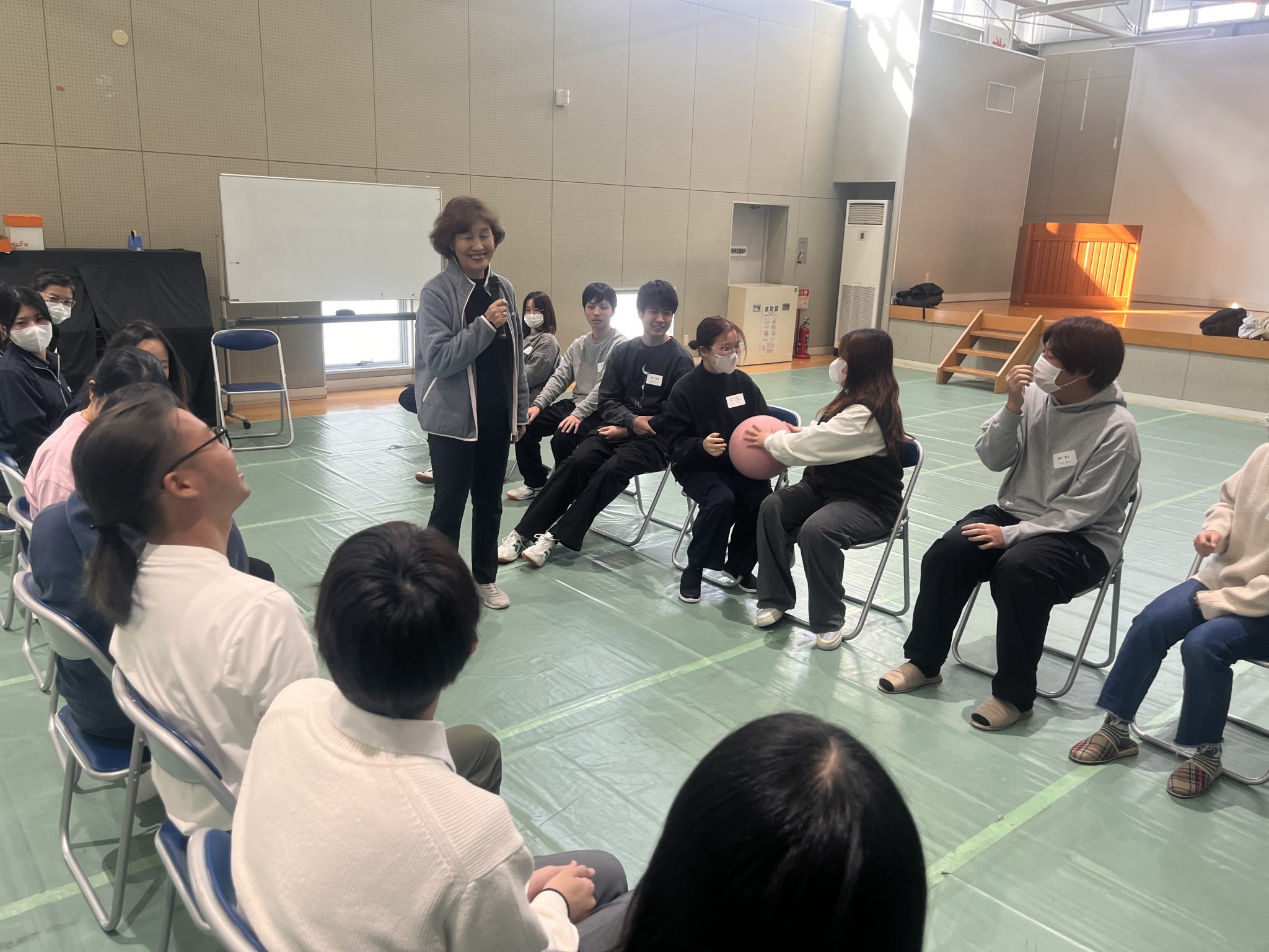 講義の後は、山本先生によるレクリエーションタイム! 最初は緊張で顔が固まっていた皆さんも、グループに分かれて協力するゲームが始まるとあちこちで楽しそうな笑い声が響き、少しずつ距離が縮まっていくのが分かりました。「同じ夢を持つ仲間」がいるって、心強いですよね!