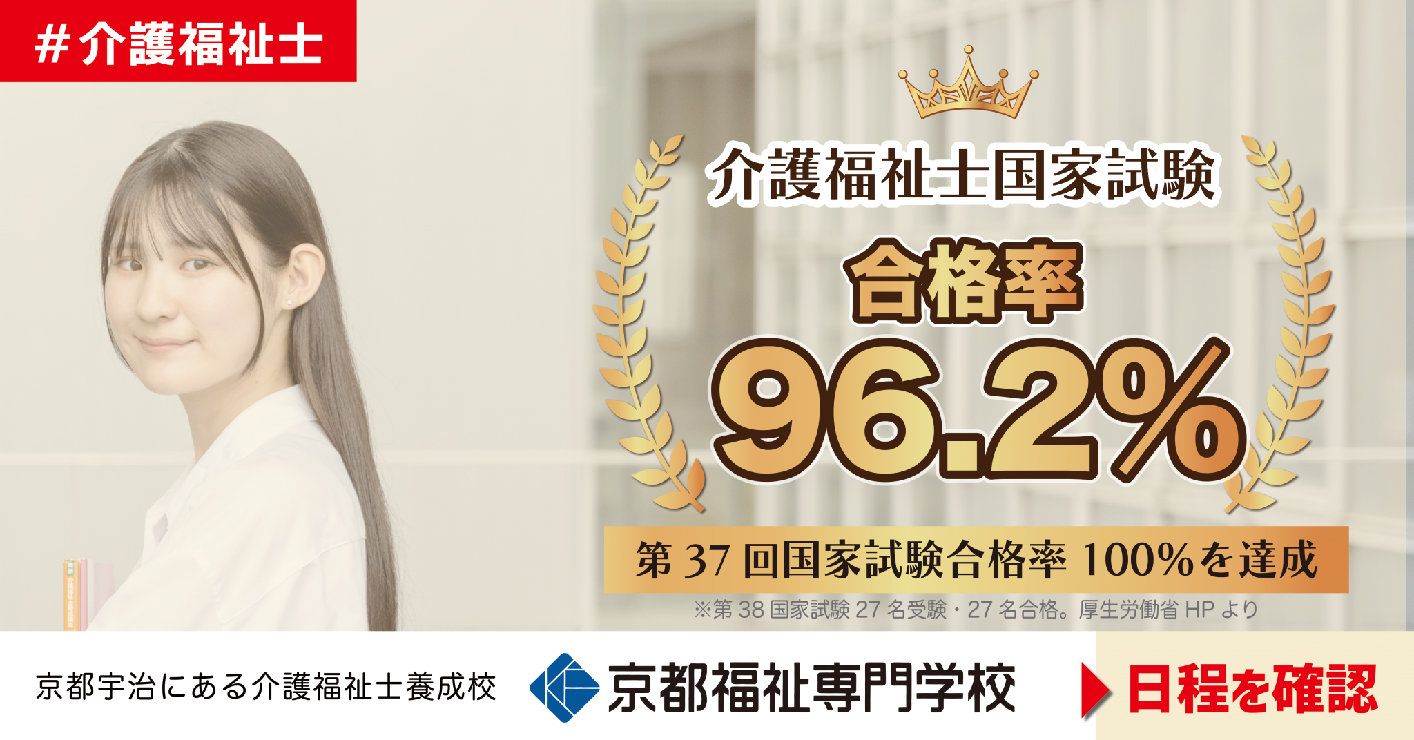 京都福祉専門学校は留学生を含む新卒生全員受験で、見事に合格率96.2%を達成しました!