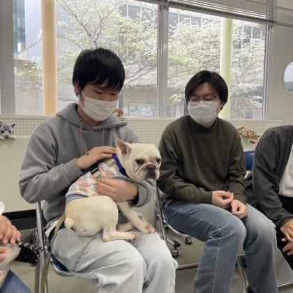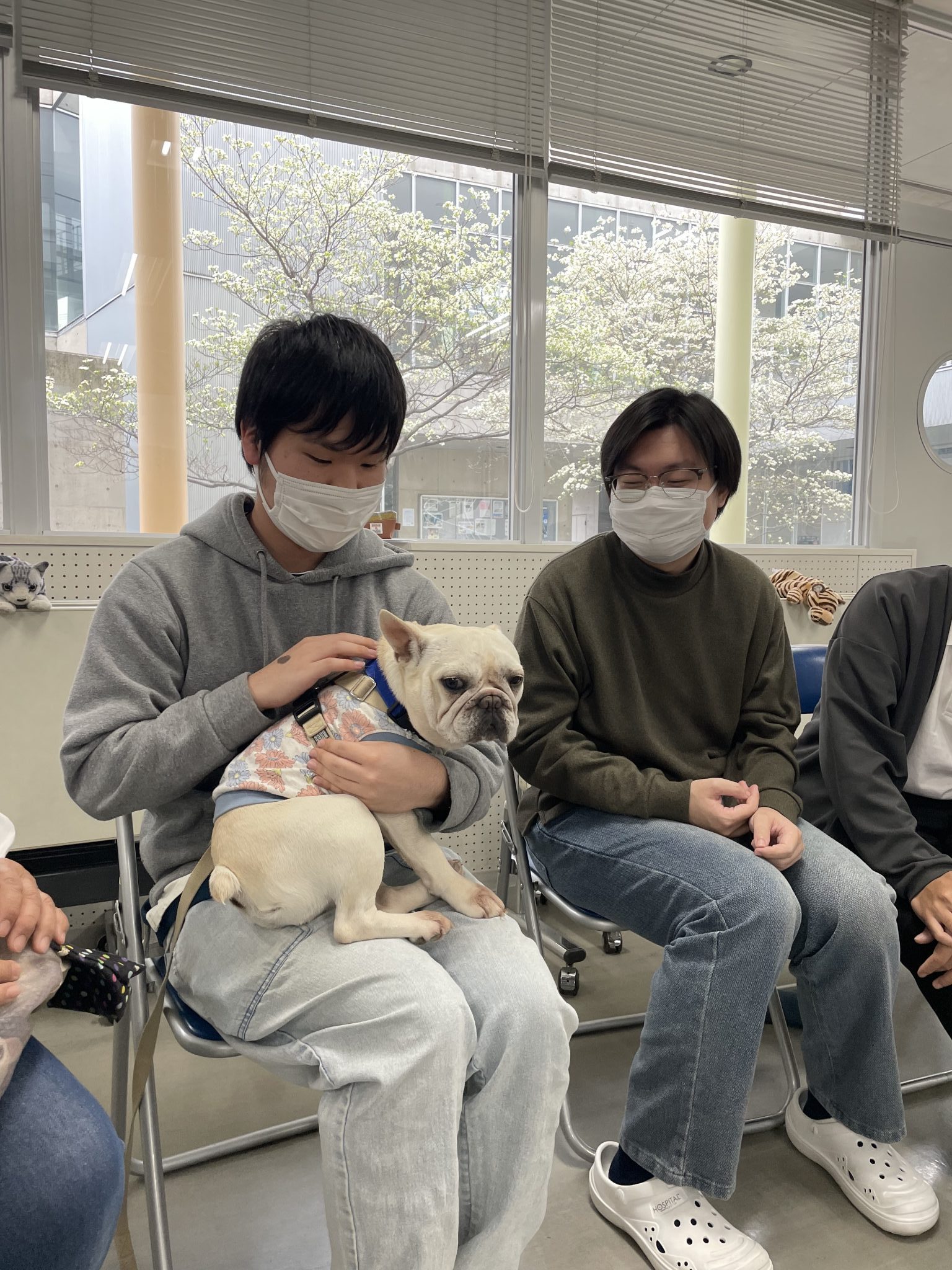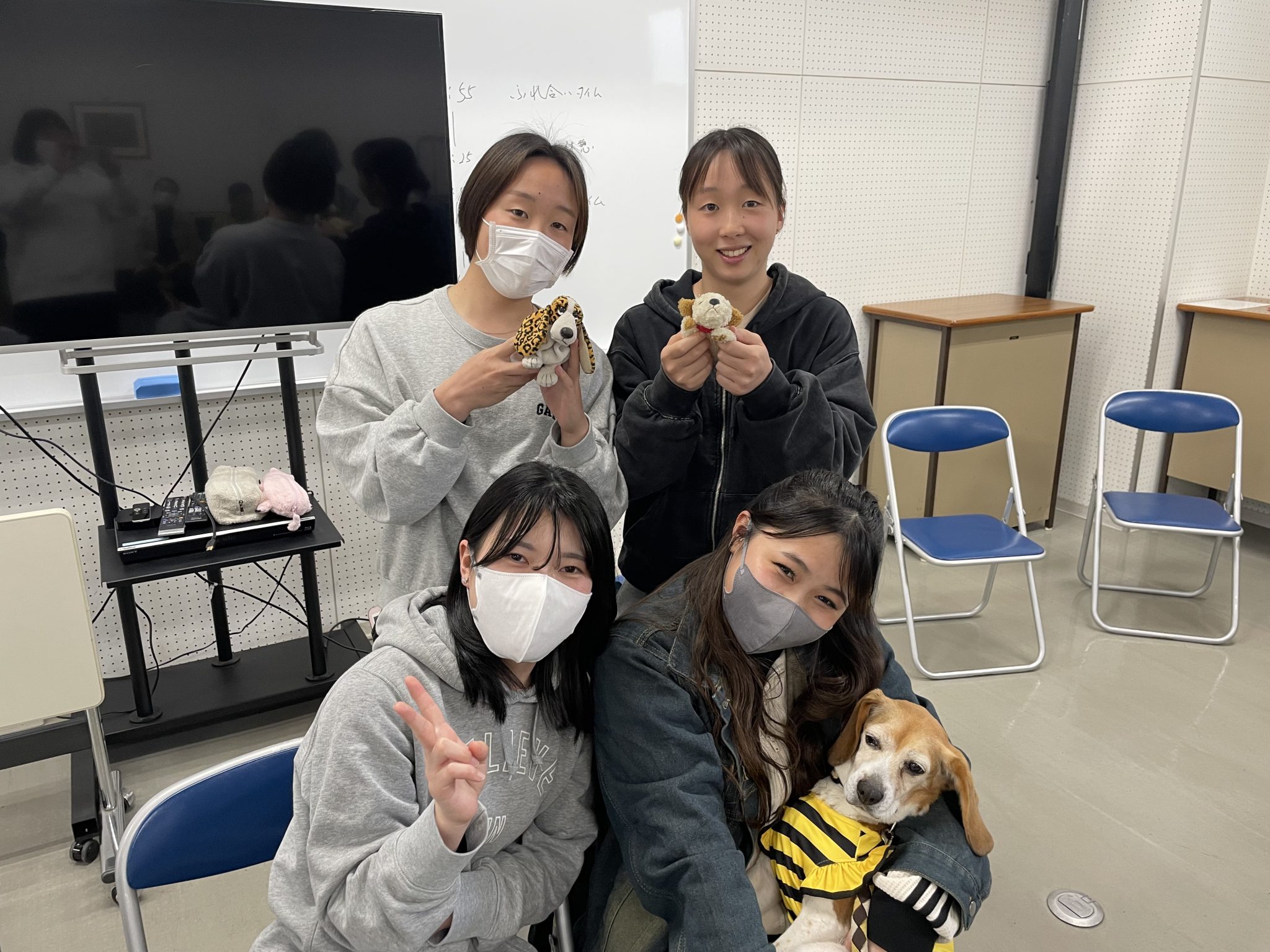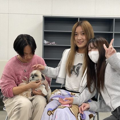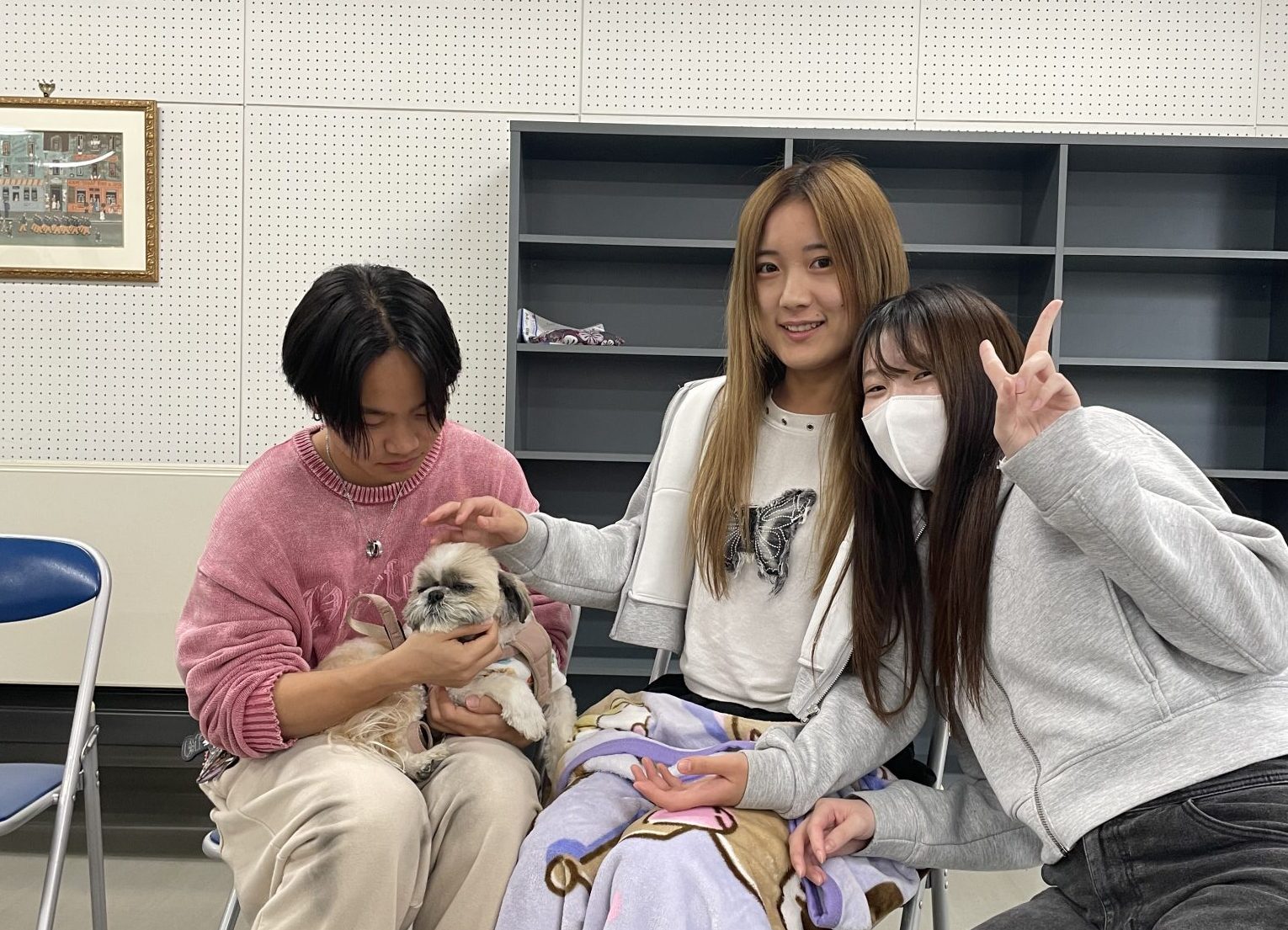 専門のインストラクターさんと一緒に、とっても可愛いワンちゃんたちが教室に遊びに来てくれました。 普段の講義とはガラッと雰囲気が変わり、ワンちゃんが登場した瞬間、学生たちの顔にパッと笑顔が広がりました😊