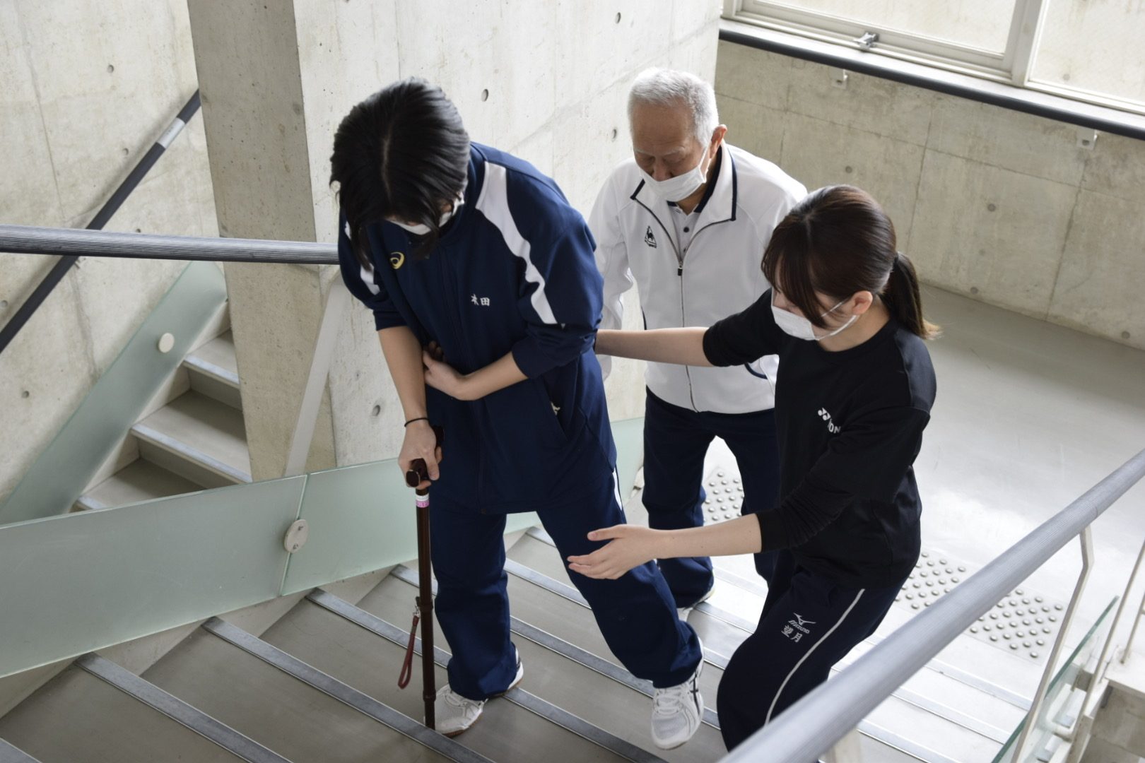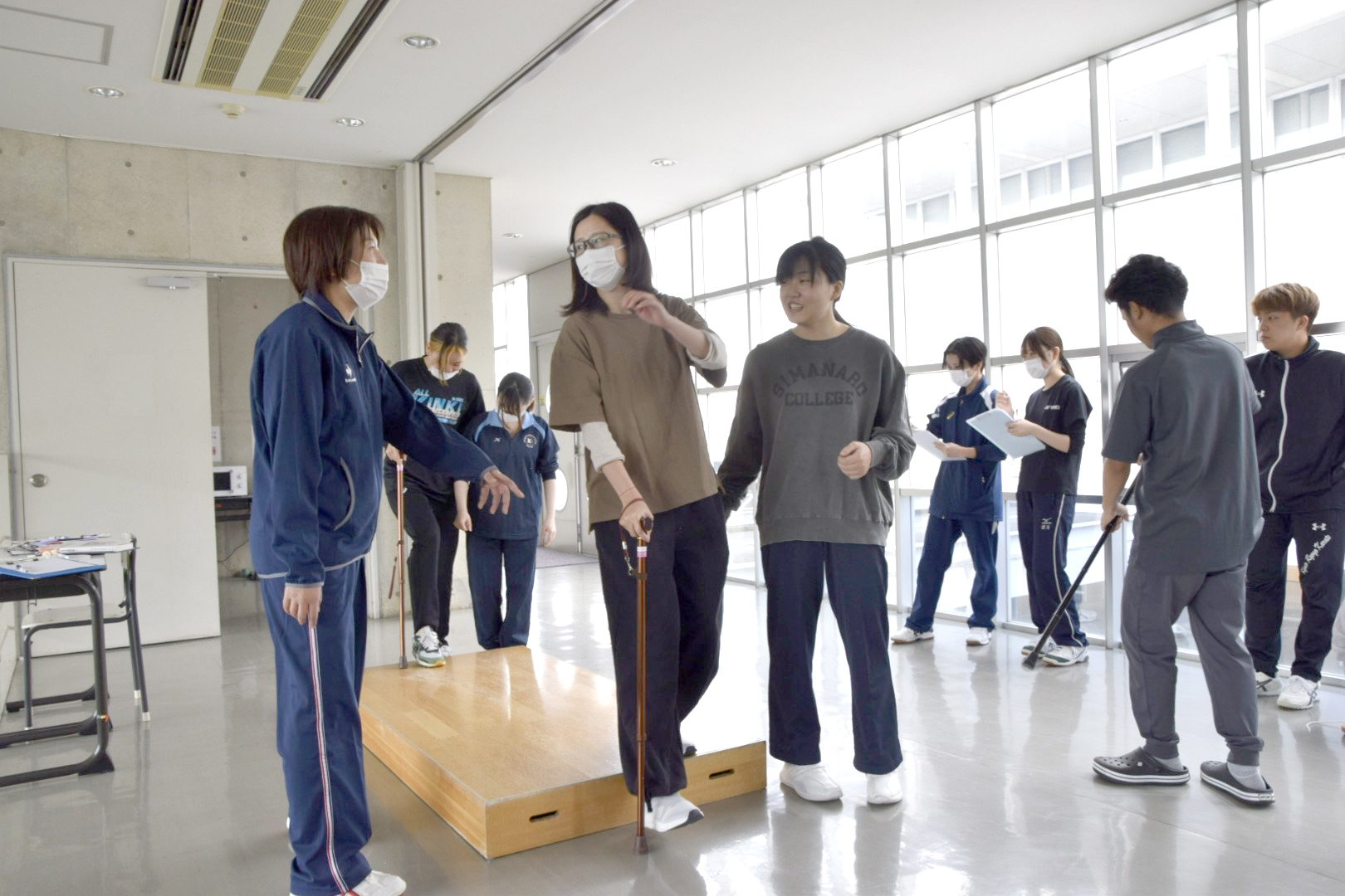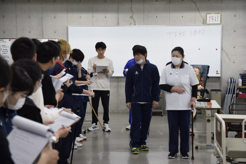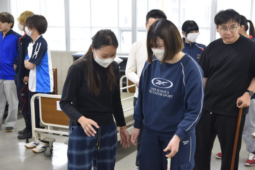 1年生が「移動の介助(杖歩行)」の実習授業を行いました