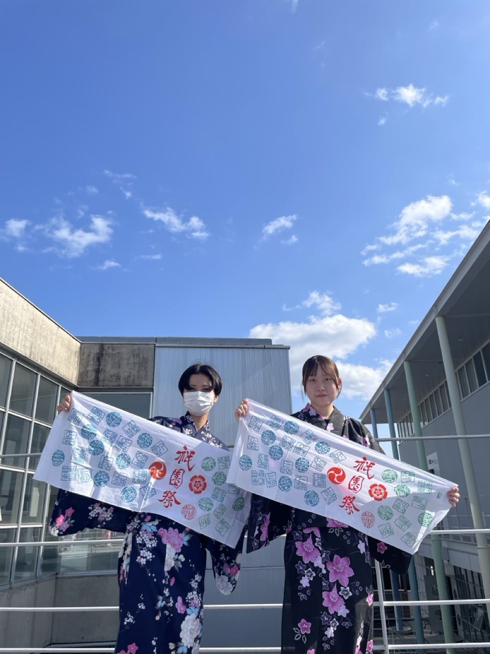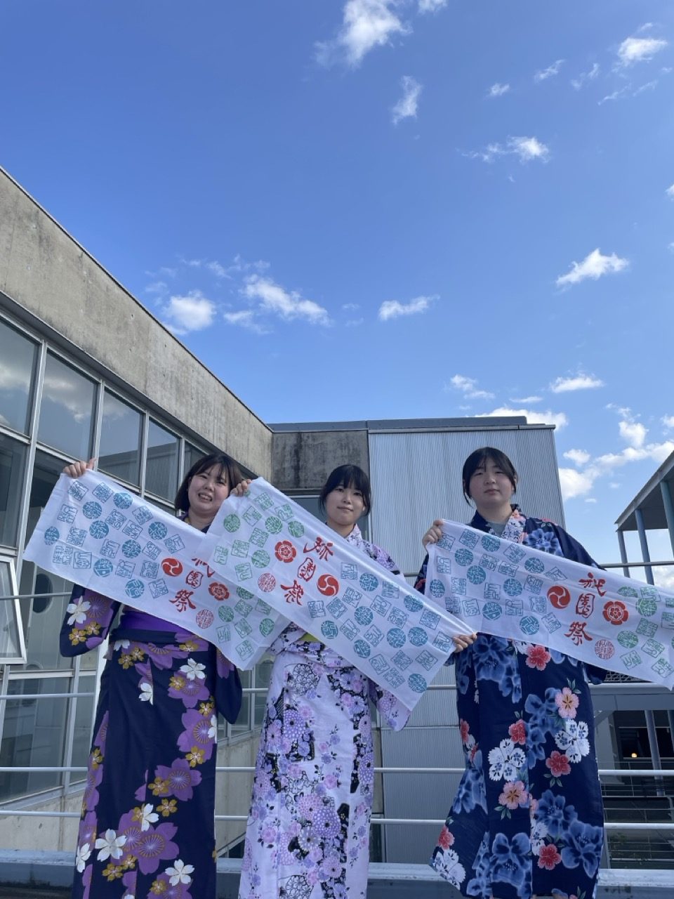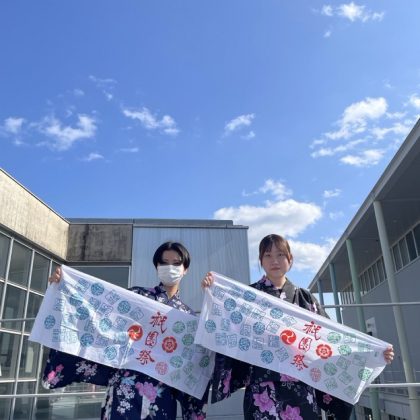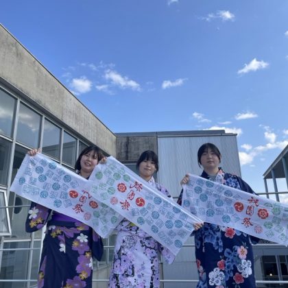 授業後には山鉾連合会の木村理事長にいただいた素敵な手ぬぐいと一緒に記念撮影!