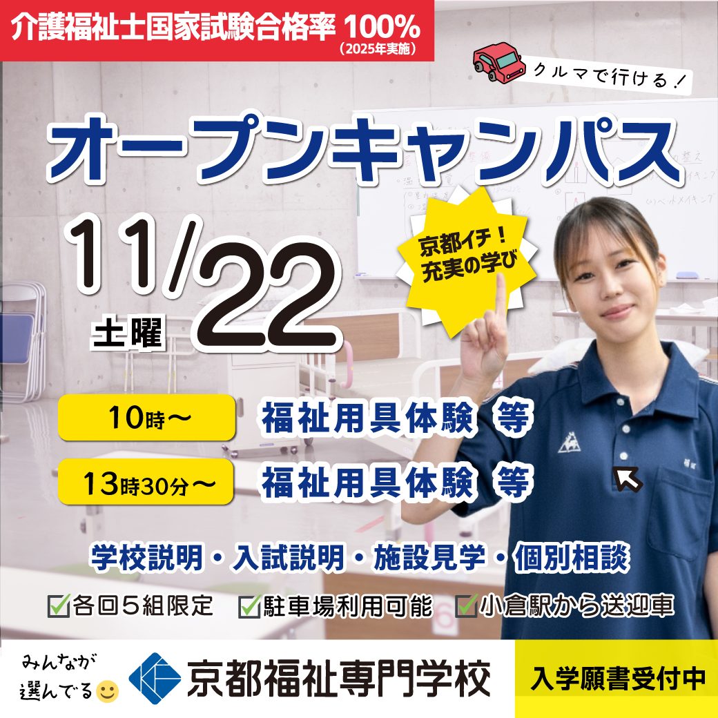 「人の役に立ちたい」「専門的なスキルを身につけたい」と考える高校生の皆さん。ぜひ、京都福祉専門学校で、介護の奥深さや専門性を体験し、あなたの未来を見つけてみませんか?